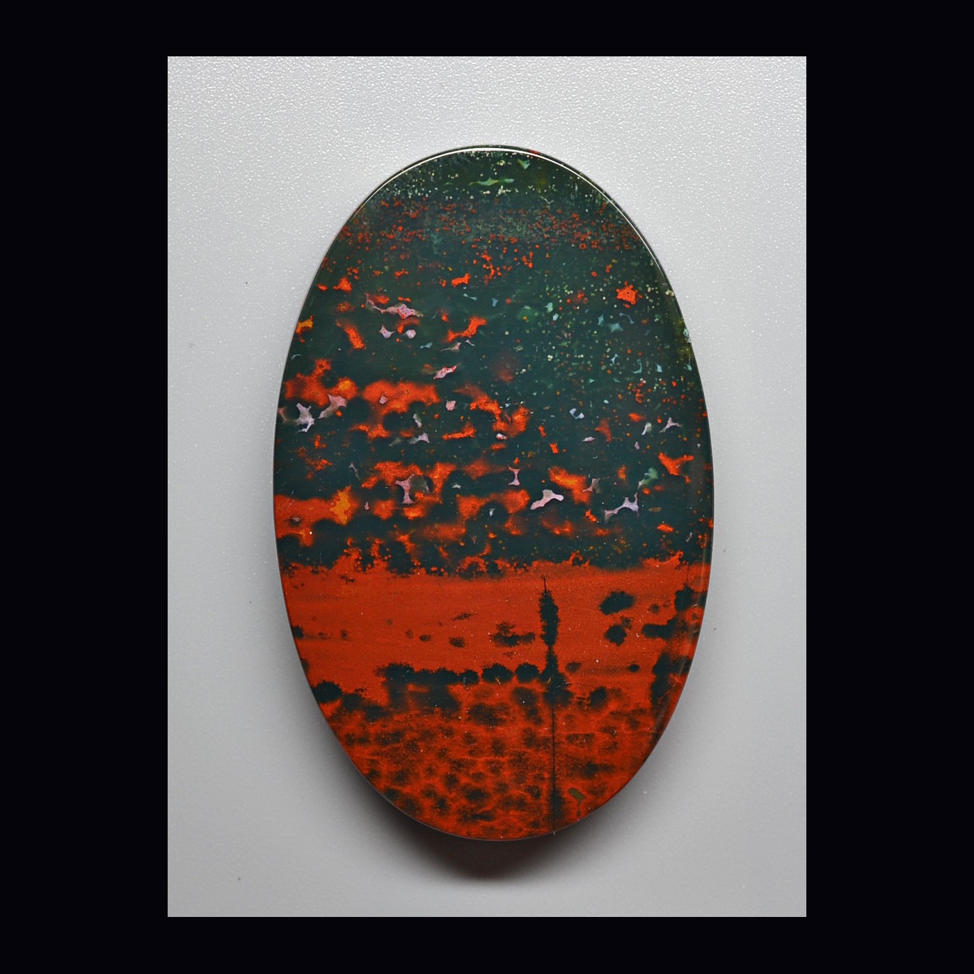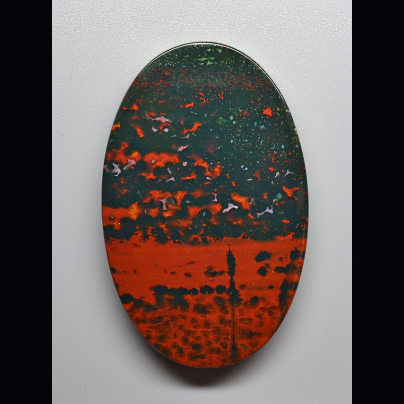 This cabochon is mirror hand polished on both side.From India.