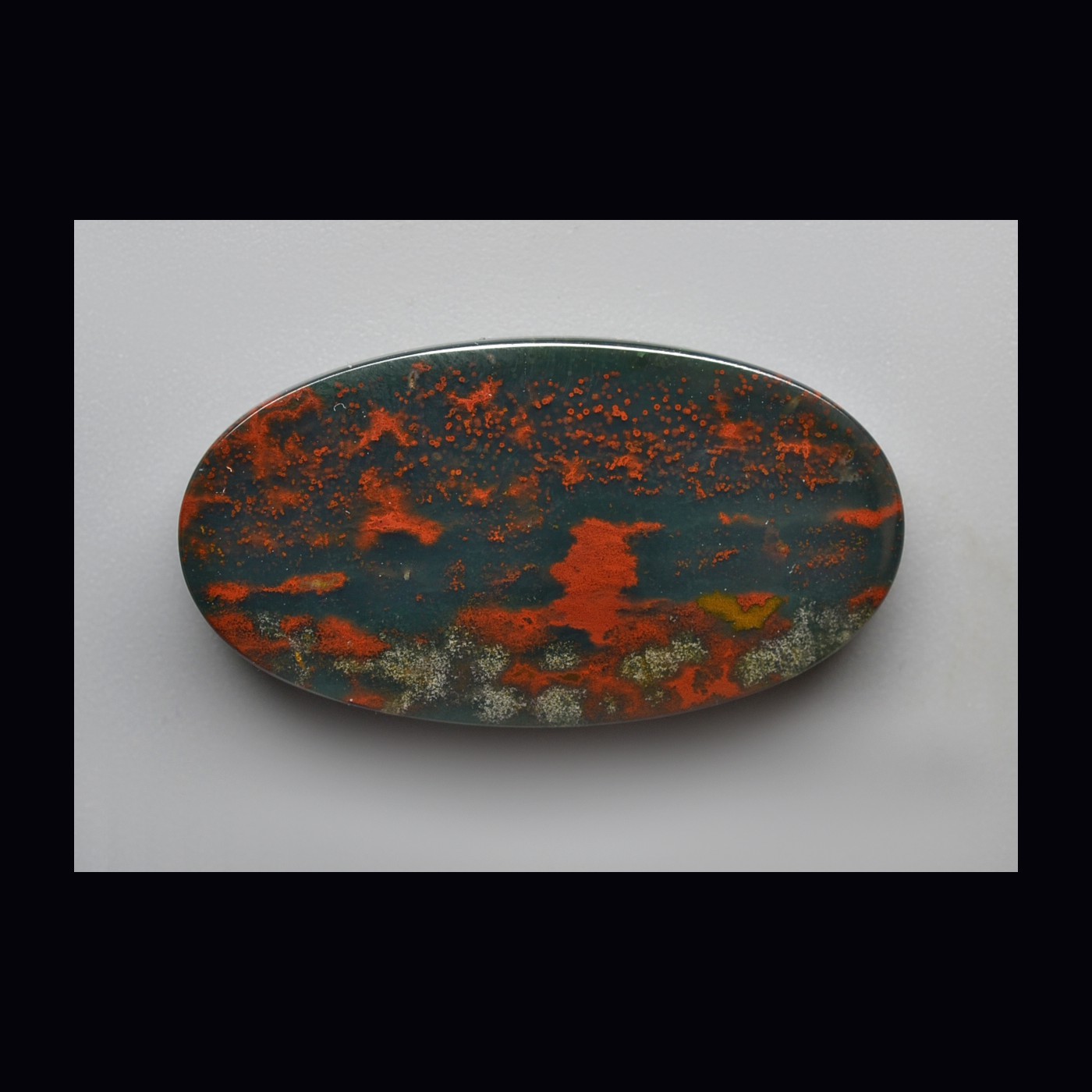 This cabochon is mirror hand polished on both side.From India.