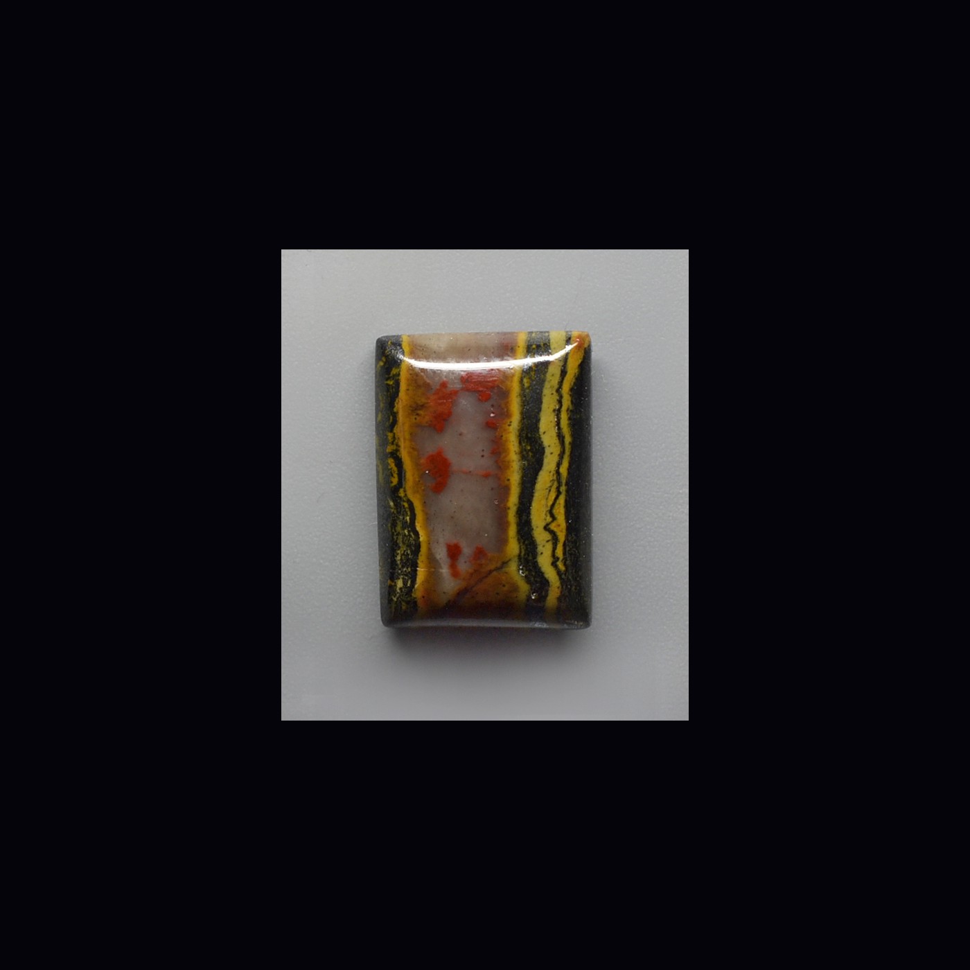 materiale principalmente composto di occhio di tigre,ossido di ferro,ematite. Geologicamente si colloca nella serie di B.I.F. ( formazione ferrosa a bande) ,un roccia antichissima formata da alghe fossilizzate alternate a minerali ferrosi; appartiene all'era archeozoica datata oltre 1 miliardo di anni, quindi la roccia marina sedimentaria piu' antica del mondo. Provenienza Australia.
