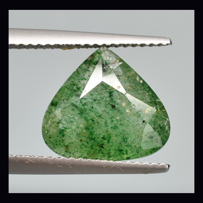 Chiamato anche “Emerald Tanzurine” è in realtà una quarzite con inclusioni di fuchsite verde.La maggior parte del materiale risulta pieno di fratture,ghiacciature ed è lattiginoso; solo una piccolissima parte viene sfaccettato.Proviene da Malambo,ad ovest di Lake Natron ,African Rift Valley,Arusha Region Tanzania.