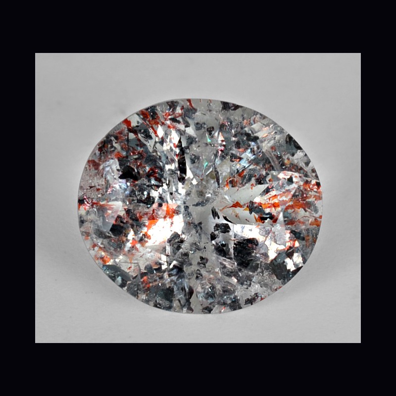 Questo tipo di quarzo presenta delle inclusioni pseudo esagonali di ematite molto sottili che risultano di un bel colore rosso vivo e nero lucente a volte iridescenti.